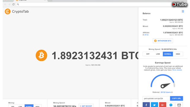 The idea is that CryptoTab is a huge mining pool which uses the collective power of many computers to earn Bitcoin. This is known as a mining pool.
